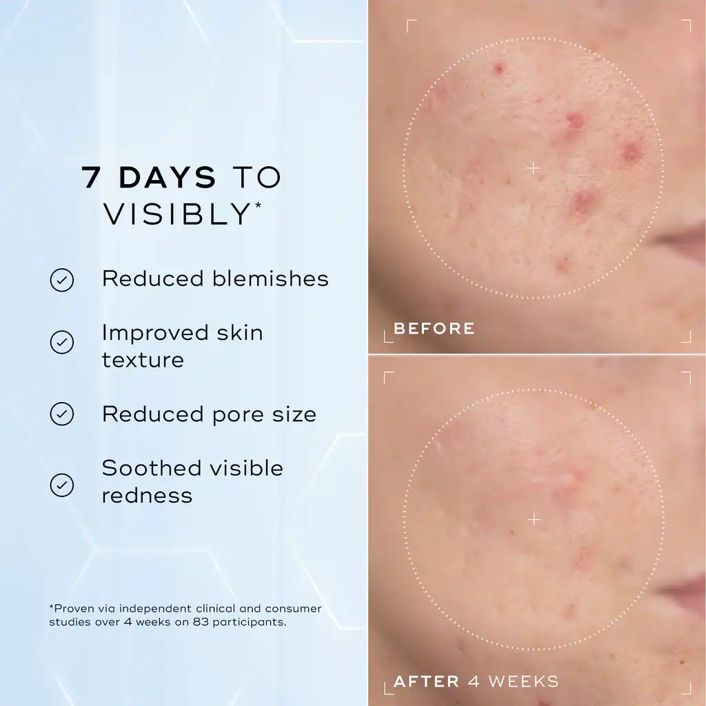 De combinatie van niacinamide, Zink PCA en N-Acetyl Glucosamine helpt de huid meer in balans te brengen en het uiterlijk van poriën en onzuiverheden te verfijnen. Tegelijkertijd zorgen hyaluronzuur en Crystalide peptide voor extra hydratatie en een gladdere, stralende uitstraling.